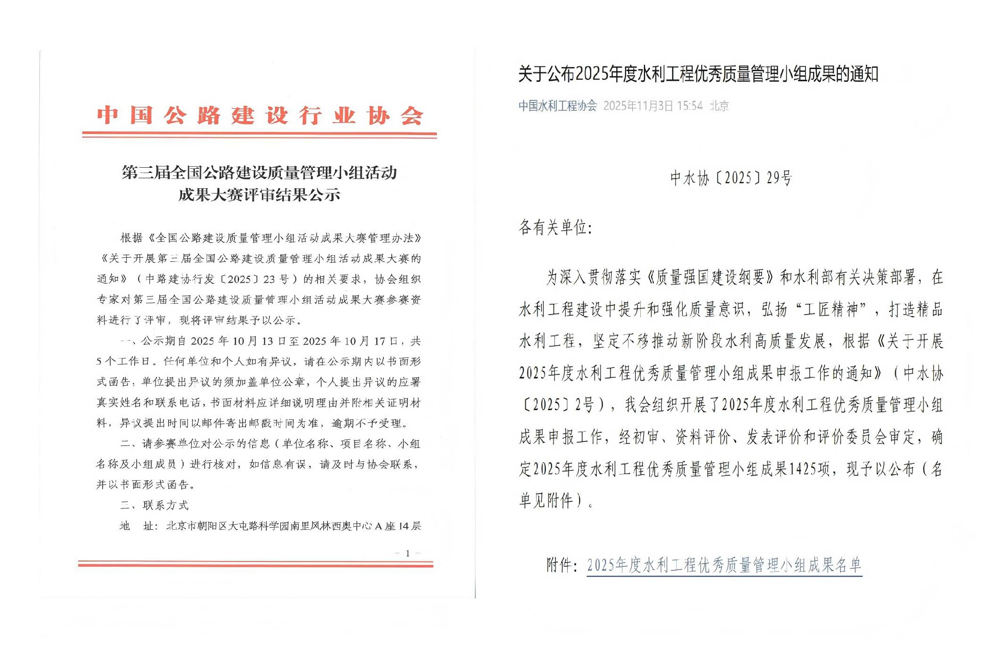 近日,中國公路建設行業(yè)協會、中國水利工程協會先后公布了第三屆全國公路建設質量管理小組活動成果評審結果和2025年度水利企業(yè)質量管理小組競賽活動結果?!啊ぁぁ?/p>